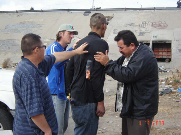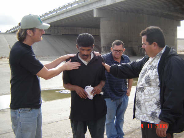 One guy (pictured above right) was actually going through withdrawals and desperately crying out for help from us to help him get off the powerful drug of heroin. Another guy was in the process of shooting a syringe into his neck, when we walked up to him, so he just left it hanging there as he took the sandwich and allowed us to pray for him. I will never forget that scene. Several others, coming across to meet us on the other side, attempted to leap the path of sewage flowing down the canal only to still land one foot in the contaminated water. I myself did the same as I skipped across a couple of tires to bring a sandwich to a lady who feared crossing the waters. As we drove away from there, I was left with the stench of my own wet feet to serve as a reminder of the conditions that these human beings live in everyday. Though some may be addicts, some may just be having hard times. One example is a man named Franciscan, who I prayed with. Franciscan explained in good English that he had lived in Oregon since he was 2 yrs old, and made a mistake at the job where he worked as a non-citizen which resulted in his deportation. He had no idea what to do in Mexico, having never been there in his adult life. He did not know where to live or how to even survive in Mexico.