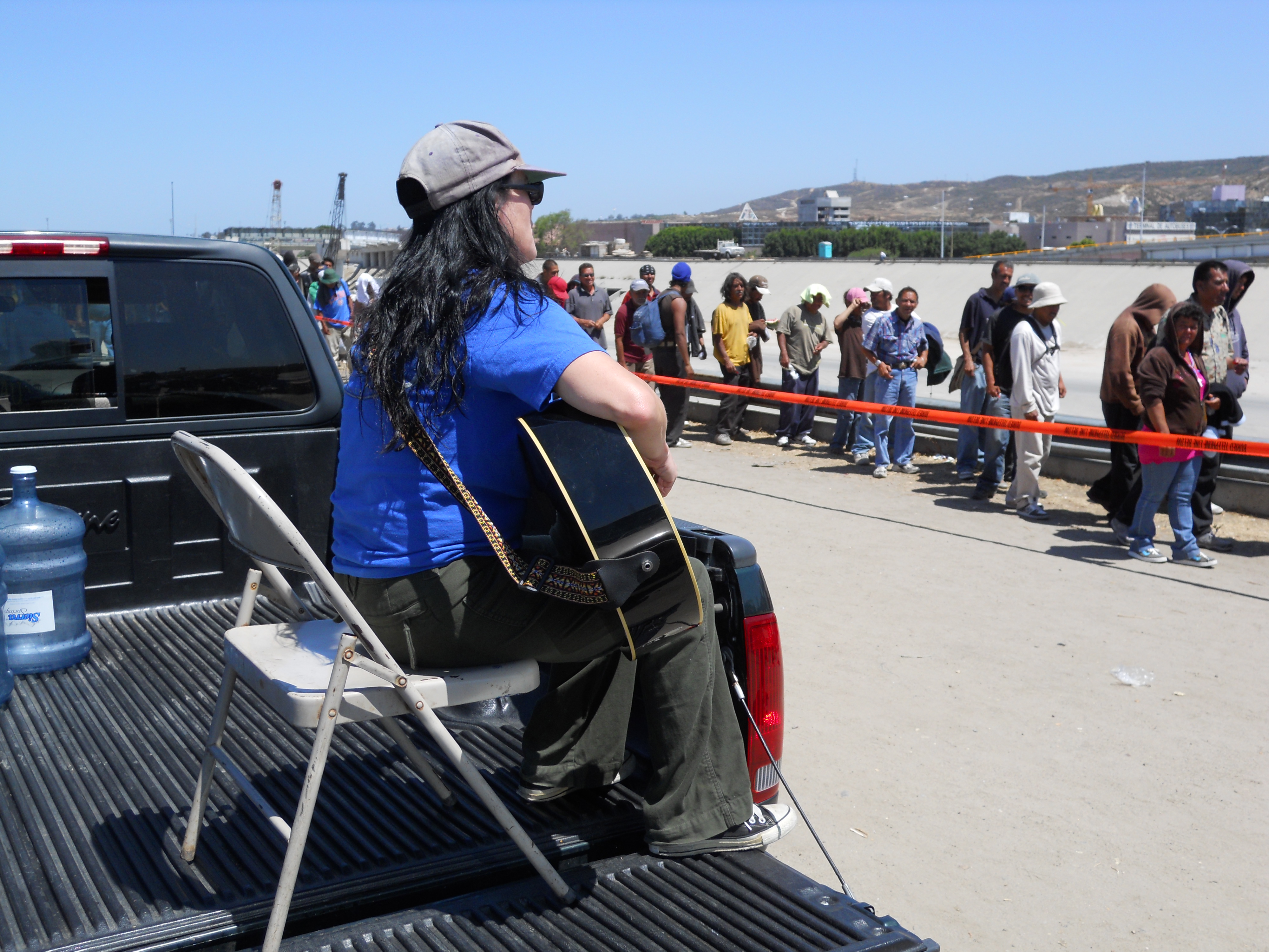 “Sitting in the back of our pick-up truck, on a metal folding chair, several hundred men, a few women and children, all along the dirty aqueduct which the Tijuana River flows through, seems like a weird place for a worship setting. What, no fancy building? No polished furniture or excellent sound equipment? Nope. Just hungry people, waiting in line for a few oranges, a sandwich and some toiletries. Or at least that’s what they THINK they are waiting for. What they actually GET, is the love of GOD in the handshakes, the prayers & the stuff handed out. And what I hope they REALLY get, is the peace that passes all understanding, as they walk through the atmosphere of worship which flows out of the back of that pick-up truck!”
