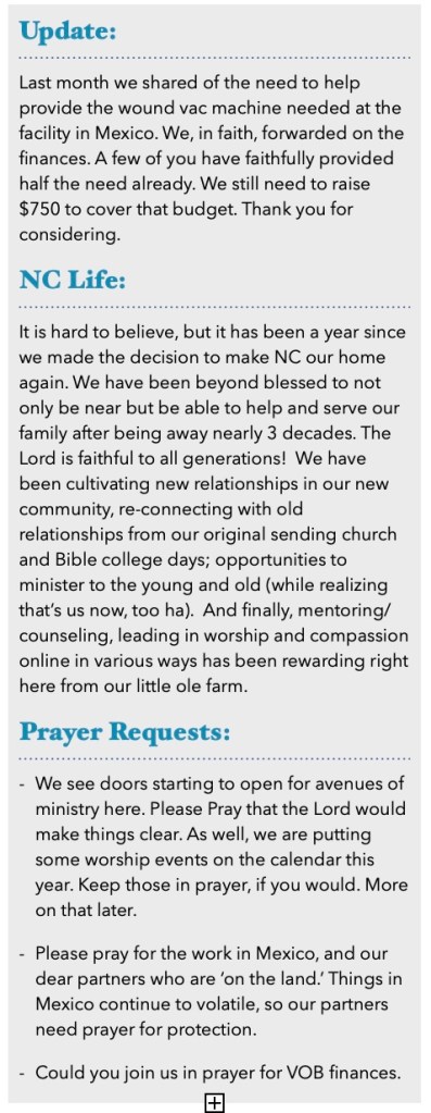 The thing that stuck out to me, was that Daniel shared the situation with his friends, and they sought the Lord together for a resolution.  The Lord heard them, and gave them the answer they sought.  Four GODly young men, standing together, crying out to the Lord for divine intervention for their very lives.  Not one of them did this alone.  They came together and sought the Lord.  I immediately thought of you, our dear friends, partners, and intercessors.  We share stories, both the difficult and the victorious.  We bring requests to you, asking for you to share in each situation in some form.  We cannot do this without you, and I don’t think the Lord would want it any other way.  None of us are lone rangers.  We need each other.  We need the Body of Christ, just as Daniel needed Hananiah, Azariah and Mishael.  Thank you for partnering with us in furthering the Kingdom.  Just as the 4 young men sought the Lord together and asked for divine intervention,  we thank you for seeking the Lord with us, for whatever He lays on our hearts and minds.  We need YOU!!