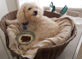 In February, right before Valentines’ Day, Franki began to get sick. At first, she simply became uncoordinated. We thought maybe she had an ear infection. But the uncoordination quickly progressed to an inability to stand, walk or hold her head up very well. Thru the vet visits, foxtails were discovered deep in her ear, and removed. These are nasty little plant-like spurs that go in, open up and don’t come out. We hoped this would be the end of it, and indeed, she did get better. Then she regressed again, only much worse this time. She could barely move, and our happy little dog became almost completely incapacitated.
