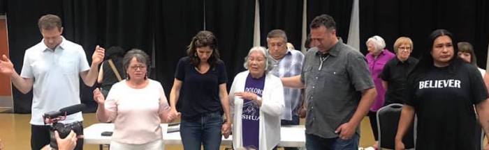 The governor of South Dakota, who is a strong Christian, sent along a letter to be read at each stop on the journey, with her thanks and blessings on our efforts to bring healing prayer, salvation and unity to the “Seven Council Fires” Reservations (Seven Council Fires, is the english translation of what the Lakota/Dakota/Nakota people call themselves). On our second to last stop, 2 state house representatives from South Dakota, joined our gathering, receiving protocol gifts from team members, as well as prayer and many encouraging words to continue fighting the good fight in the state house of legislation.