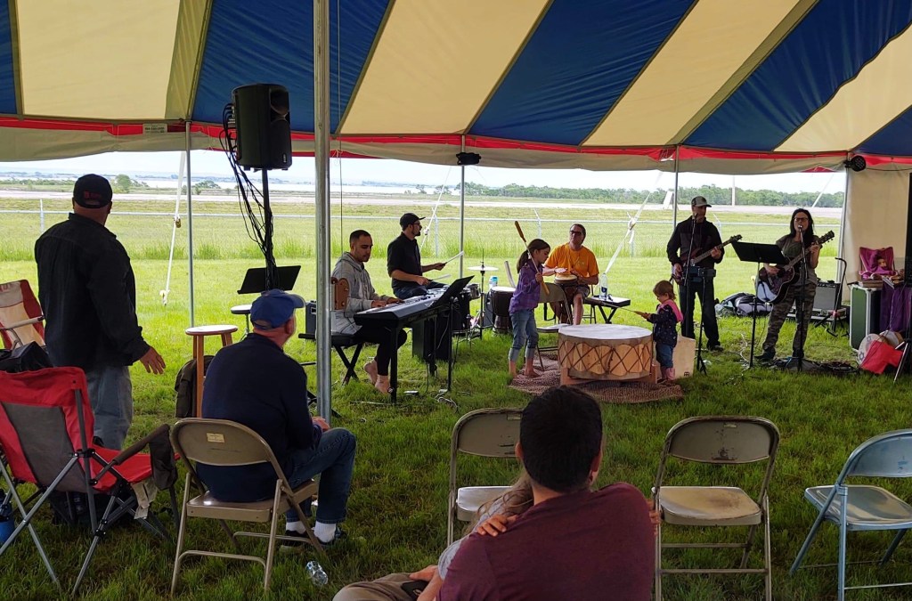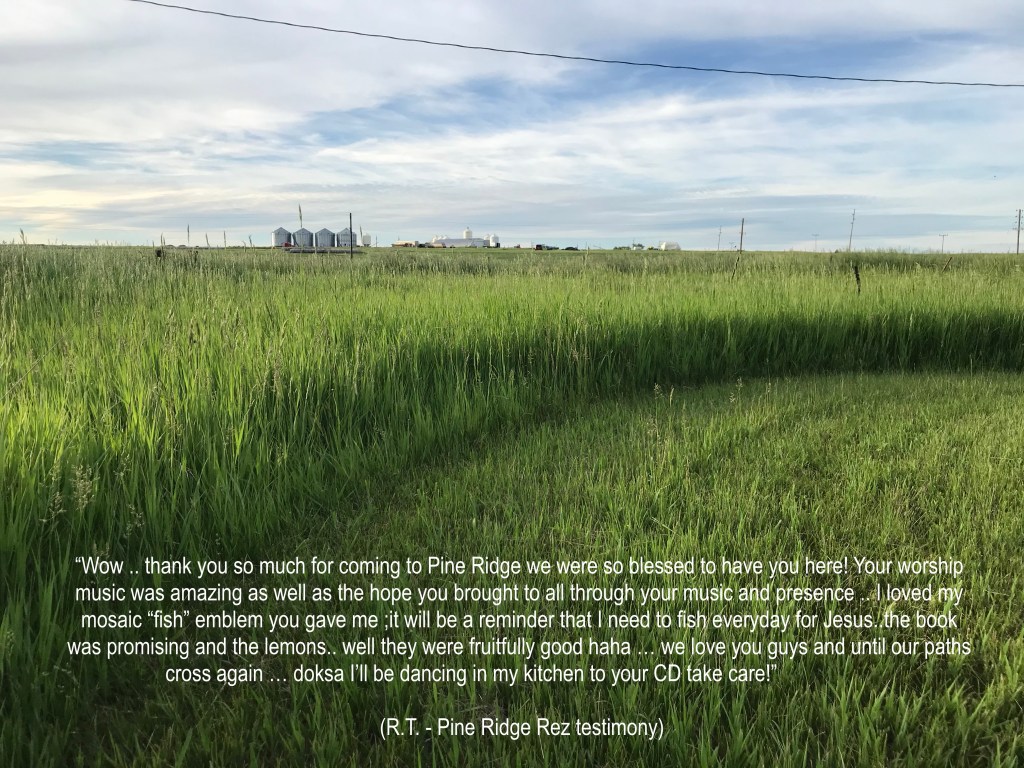 We had driven for 3 days straight, to get to Lower Brule reservation, where the 1st leg of the trip would occur. 24 hrs of worship, in a tent outside of Lower Brule high school, with a view of the Missouri river was pretty cool. I wasn’t sure how I would have the energy to do even a 2 hour set. And yet, the Lord WAS there and He WAS faithful! I was amazed at how He came and moved throughout the entire event, and how He gave our small team the unity and strength to move under His guidance. Two young Lakota men gave their lives to the Lord, a couple others were baptized in the Missouri River and other supernatural things occurred. It was beautiful!!