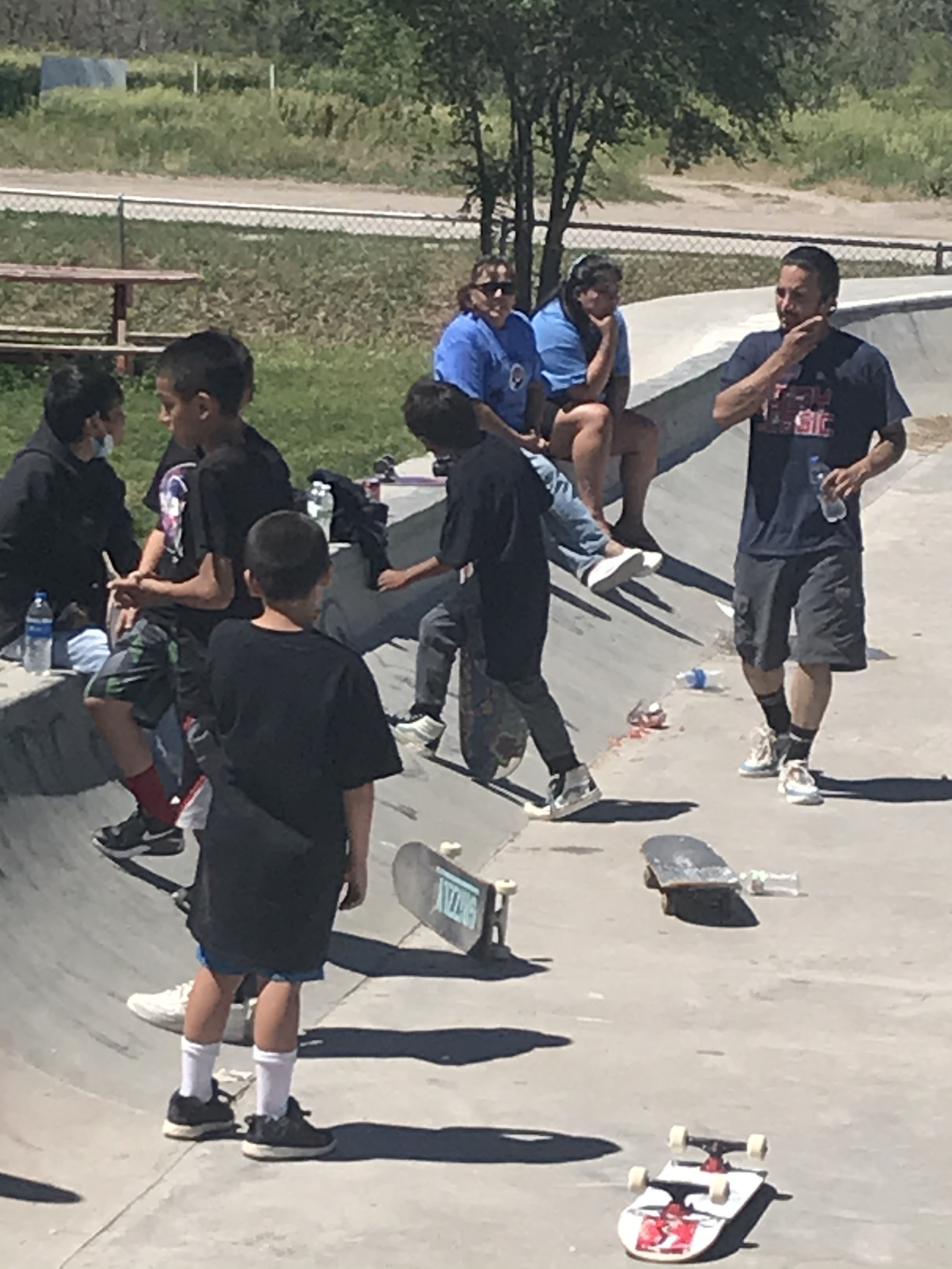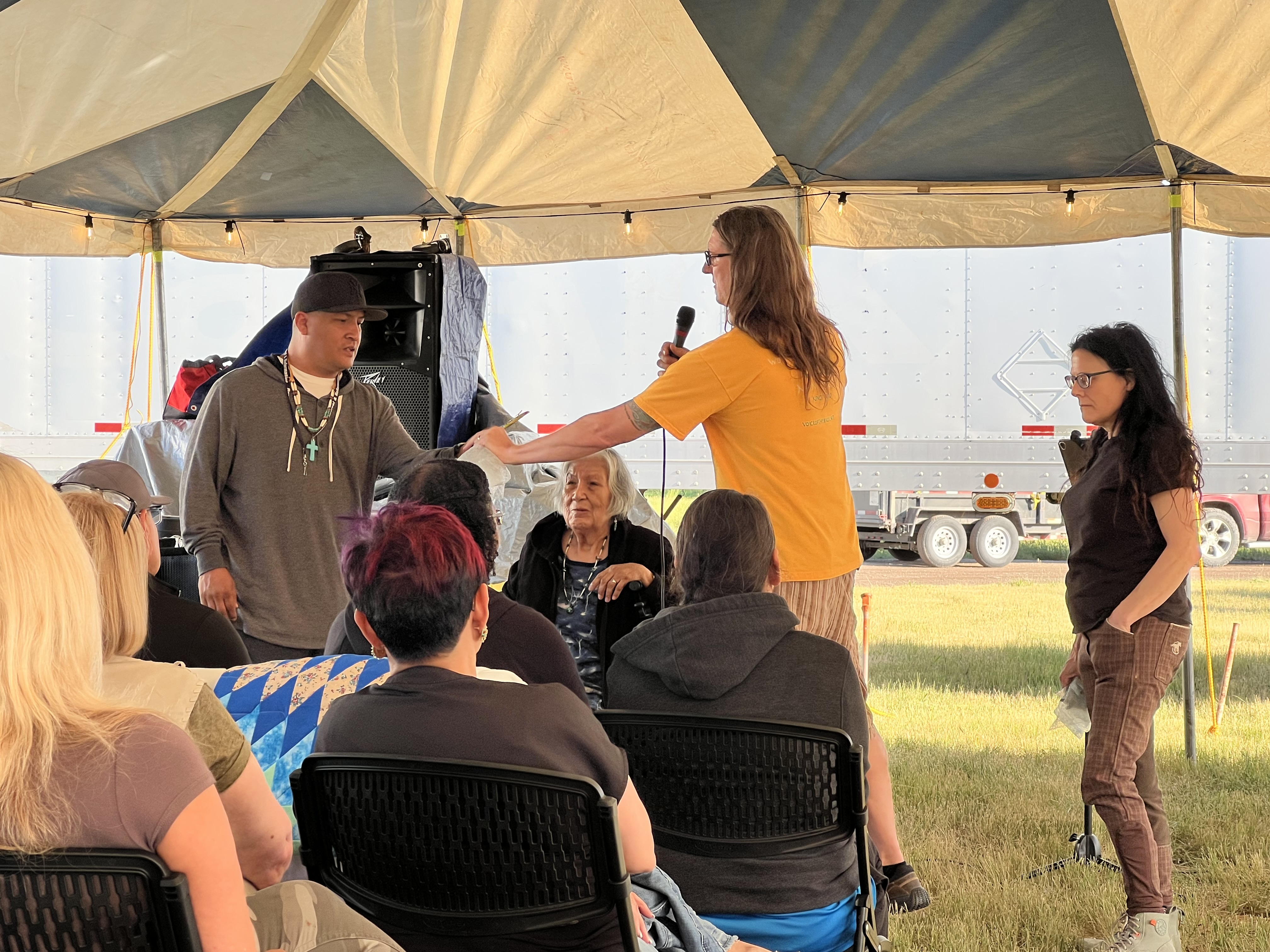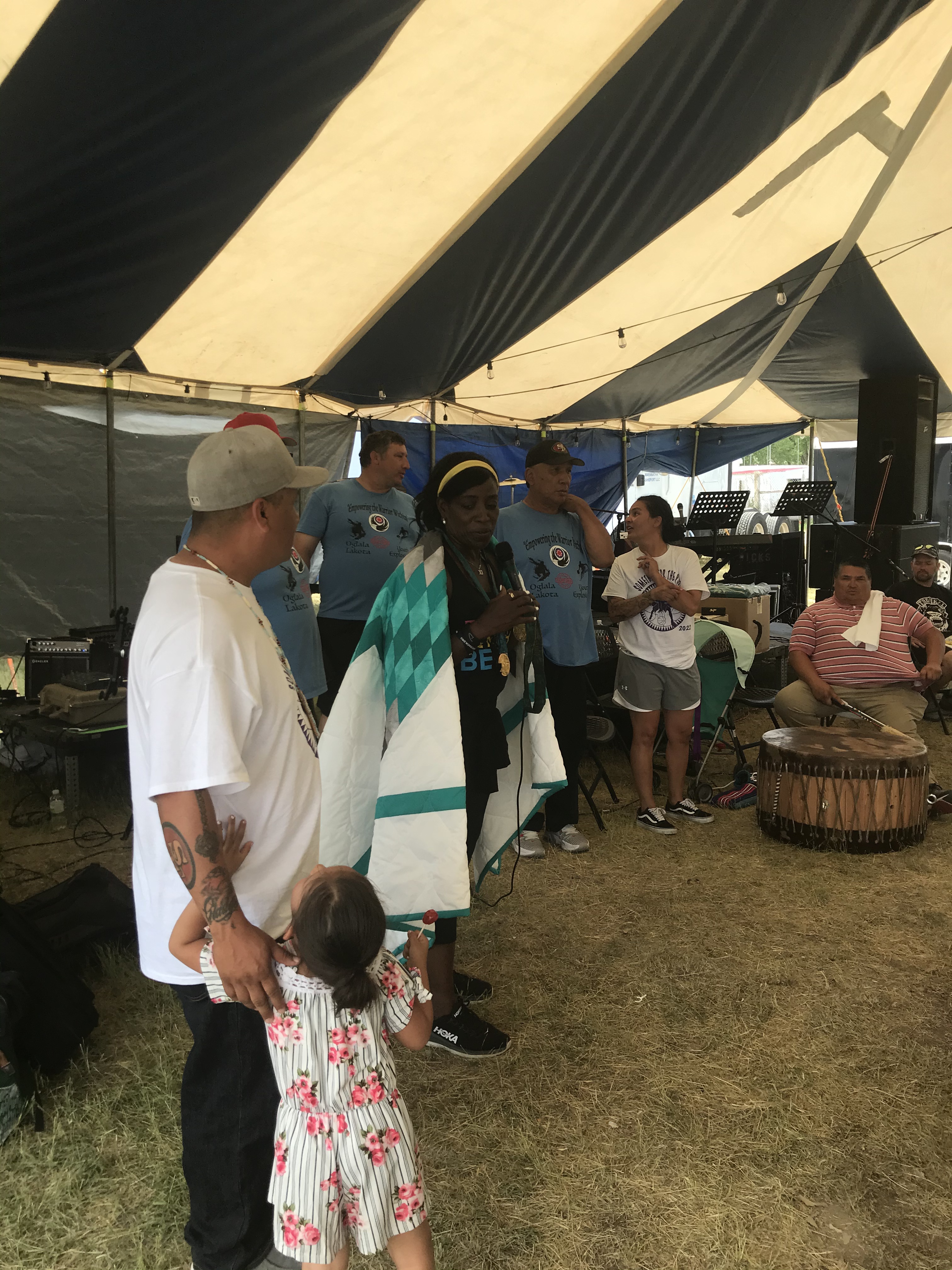 Pine Ridge, South Dakota: Pine Ridge runs along the bottom of SD, so we stayed in the small town of Hay Springs Nebraska (population 615 salut!😃), about 30 min outside the rez, since the rez hotel was booked up. People had come from all over to support this week long worship and outreach. Every day, kids were gathered for both skate boarding and basketball competitions. We met a 2x gold olympic medalist, Ruthie Bolton, for USA women’s basketball, who helped coach the kids along with WNBA chaplain, Fleceia Comeaux. We also met a young man, Kyle, who wants to see kids on the reservations really take up skateboarding as a big outlet. Many of the elders are really encouraging him to lead this youth movement on the Rez. They actually have their own skatepark, which is amazing. VOB hopes to support this group, with potential future donations of BMX bikes and/or boards and hopefully protective gear for riding/skating. As always, as part of cultural protocol, several elders were acknowledged and gifted. Our friend Norma (tribe elder), George Dreamer (Norma’s grandson also a member of the tribal council), Kyle and Ruthie (see photos below)